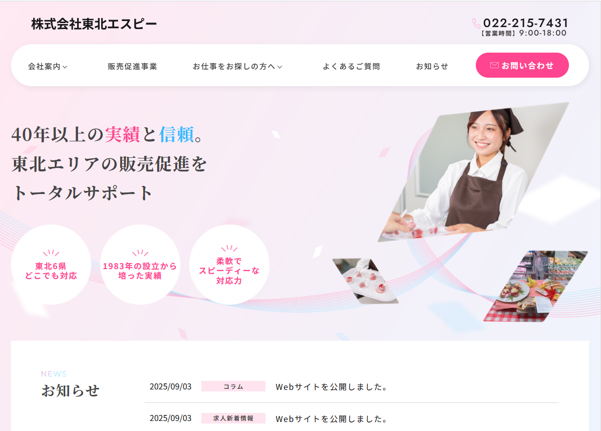 【東北エスピー】事務パートさん募集! ★1日5時間、週3日~勤務可能!ご相談に応じます! ★勤務地は大町西公園駅から徒歩1分! 東証上場食品会社の販売促進代行事業の一般事務業務の仕事です。 電話応対や受付接客など一般事務業務に加え、販売スタッフの指導や応援もお願いします。 ◆…