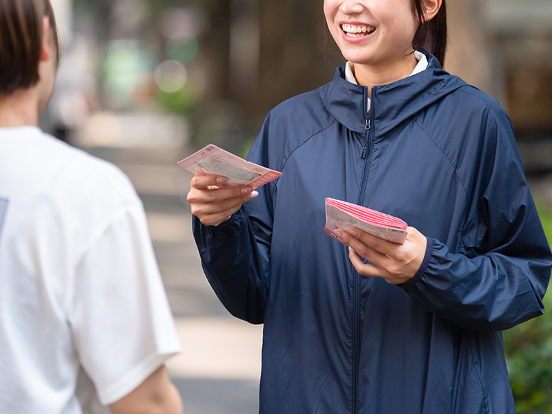 チラシやサンプル商品、ノベルティなど、目的や商材に応じた販促アイテムを、ターゲットに合わせて的確に配布します。ブランドや商品の印象がしっかりと残るよう、丁寧な対応と現場管理にも力を入れています。